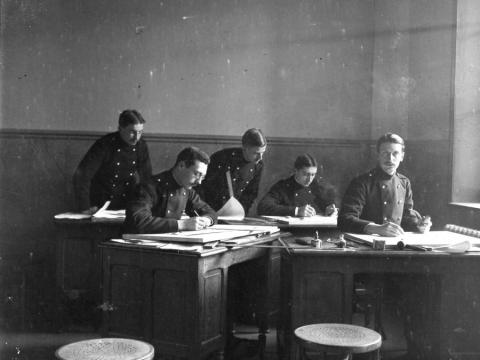 AgroParistech / Élèves de la 88e promotion de l'Ecole Nationale des Eaux et Forêts de Nancy en étude, 1912. Education First teachers Recruitment of forestry students Training ground